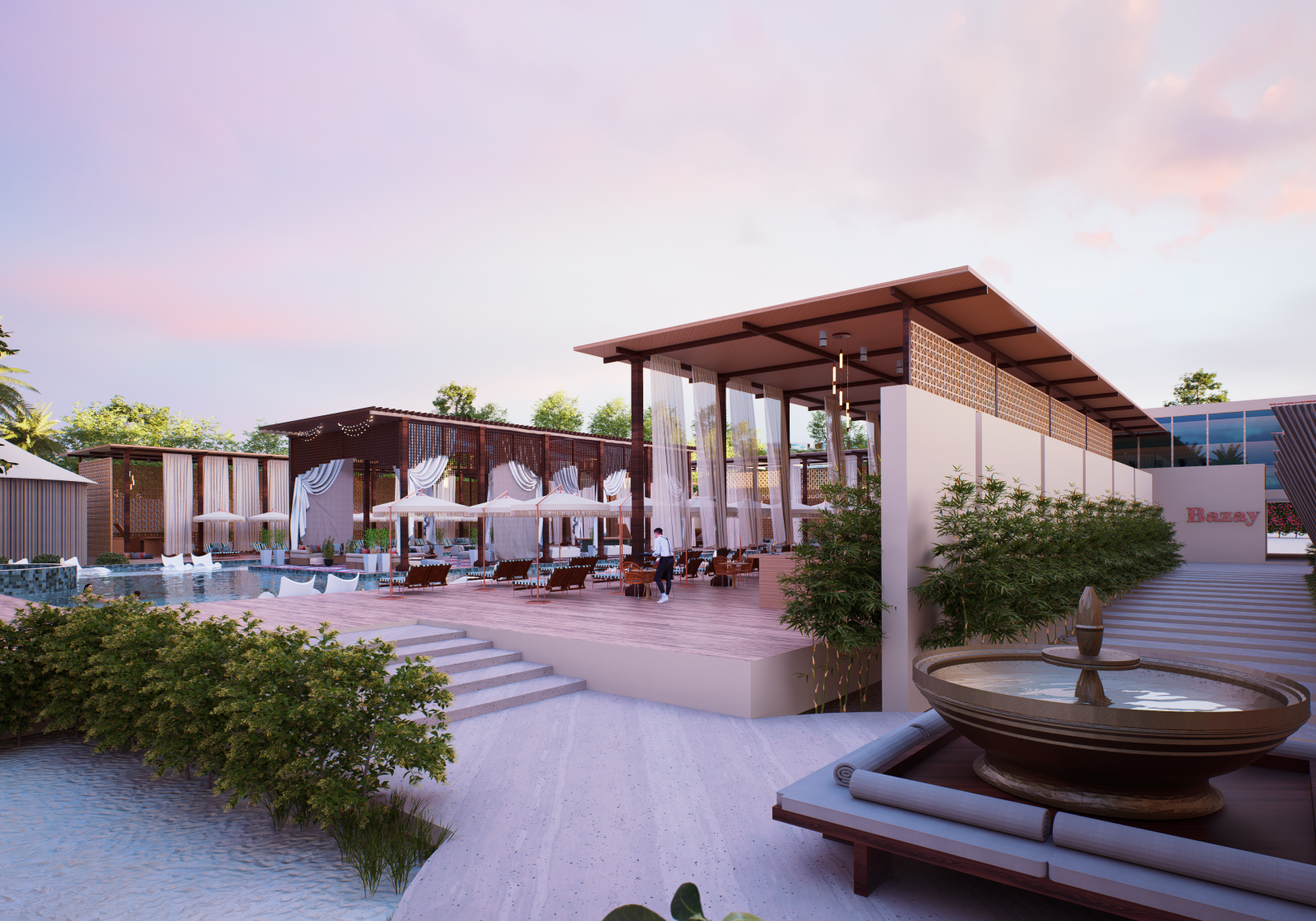 El Hotel cuenta con Beach Club, Zona de Baile, Piscina, Bar dentro de piscina o Zona VIP, Área de Restaurantes, Bares, Gym, Zona de Fogata, Cinema, entre otras.